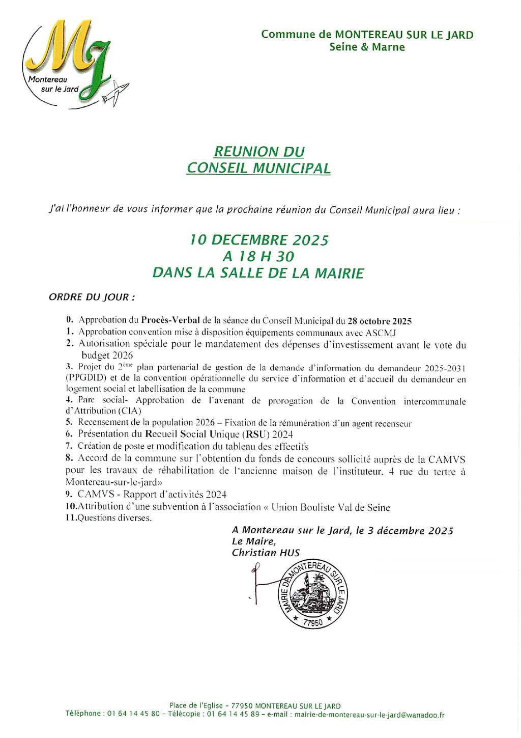 - Approbation du Procès-Verbal de la séance du Conseil Municipal du 28 octobre 2025