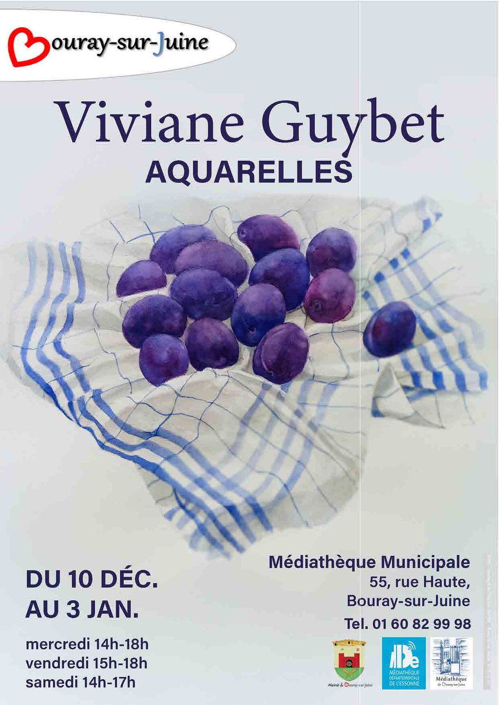Après le succès de l'exposition autour des collages, peintures et sculptures de Catherine Autrive-Zanghellini cet automne, la médiathèque municipale a le plaisir d'accueillir une autre artiste locale en la personne de Viviane Guybet, peintre et sculpteur, avec la présentation d'une sélection d'aquarelles du 10 décembre au 3 janvier.